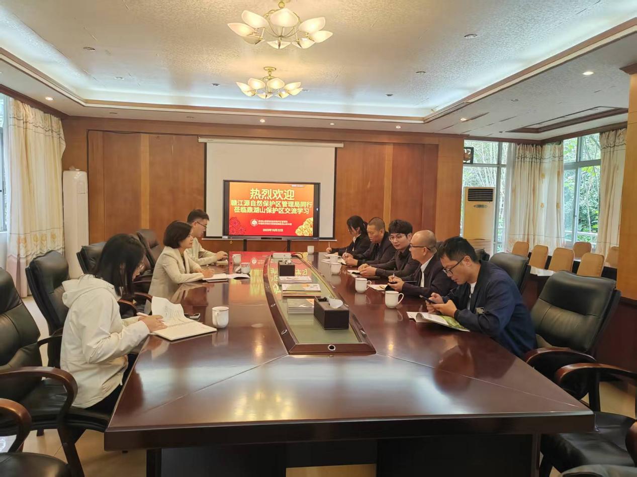双方首先进行了座谈交流,座谈会主要围绕资源管护、科研监测、社区共管、科普宣教等重点业务展开深入探讨。赣江源保护区分享了其在生态保护与科研合作等方面的先进经验与创新做法;鼎湖山保护区则结合自身实际,重点介绍了在科研监测、科普宣教与社区共建方面的特色举措。双方一致认为,此次交流有助于相互借鉴、取长补短,共同探索保护与发展的新路径。