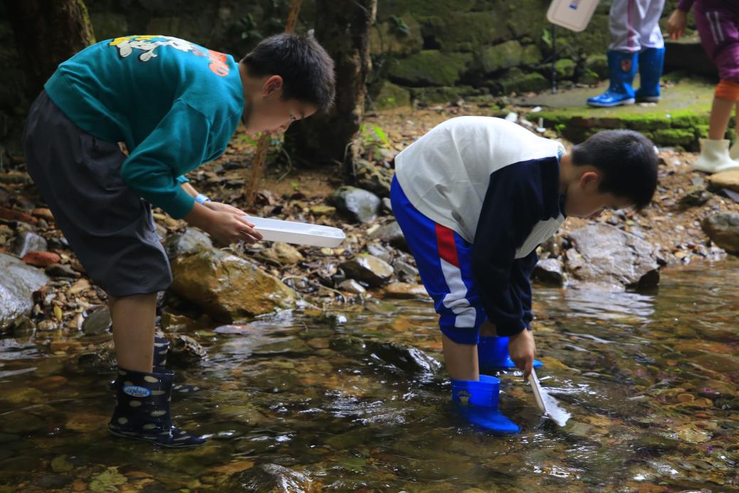 学生们走进山涧溪流,亲手采集底栖动物。通过采集和识别对水质敏感度不同的指示物种,学生们学会了如何评价水体的洁净程度,将底栖生物与周边环境质量联系起来,理解生物与环境相互关系,掌握了环境监测的一项关键技能。