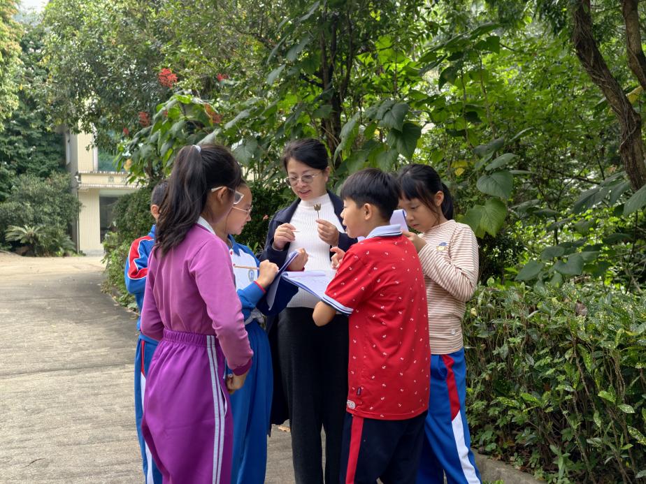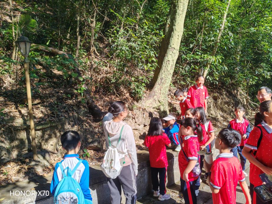 本节课作为系列课程的收官与实践整合环节,学生们以“公民科学家”的身份,在鼎湖山保护区的自然教育径上,回顾并探究前期所学内容,完成从学习者到实践者的蜕变。