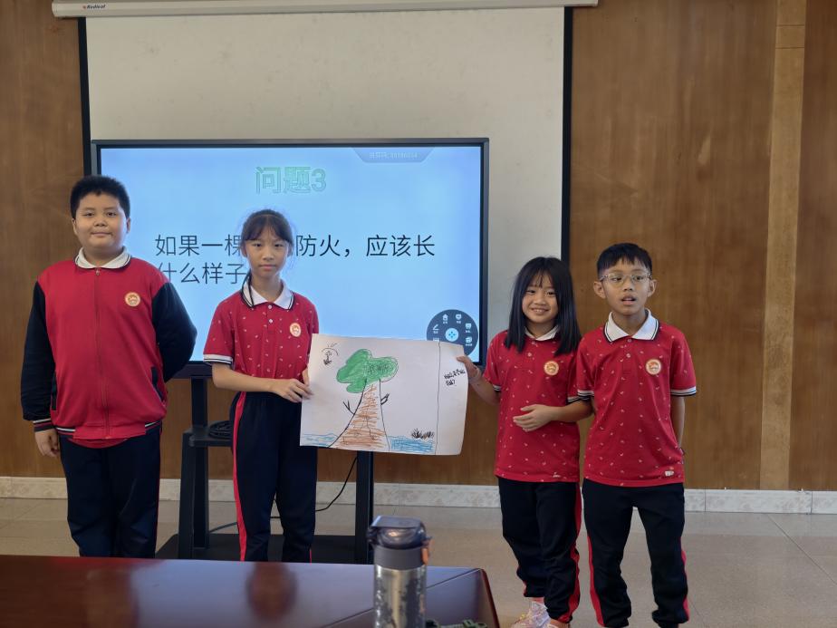 课程以树木具有防火功能激发学生的好奇心为起始,通过学生创作防火树种,从而引入鼎湖山保护区防火树种“荷木”。学生们深入探究荷木作为防火树种的特殊结构、其在森林演替中的“先锋”作用,以及如何通过人工造林维护生态平衡,让学生理解用自然的方式来解决环境问题。