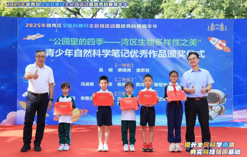 由鼎湖山保护区协办的“公园里的四季——湾区生物多样性之美”青少年自然科普笔记欢乐汇活动,经过线上培训、作品征集和专家评分等阶段,在广州市越秀区主会场活动暨越秀科普嘉年华上举行颁奖仪式。本次活动共诞生18份优秀作品,旨在通过自然教育与艺术创作的深度融合,引导公众(尤其是青少年)建立与自然的情感联结,讲好绿美湾区、人与自然和谐共生的故事,树立“尊重自然、顺应自然、保护自然”的生态文明理念,提升青少年科学素养,积极构建自然教育生态圈。