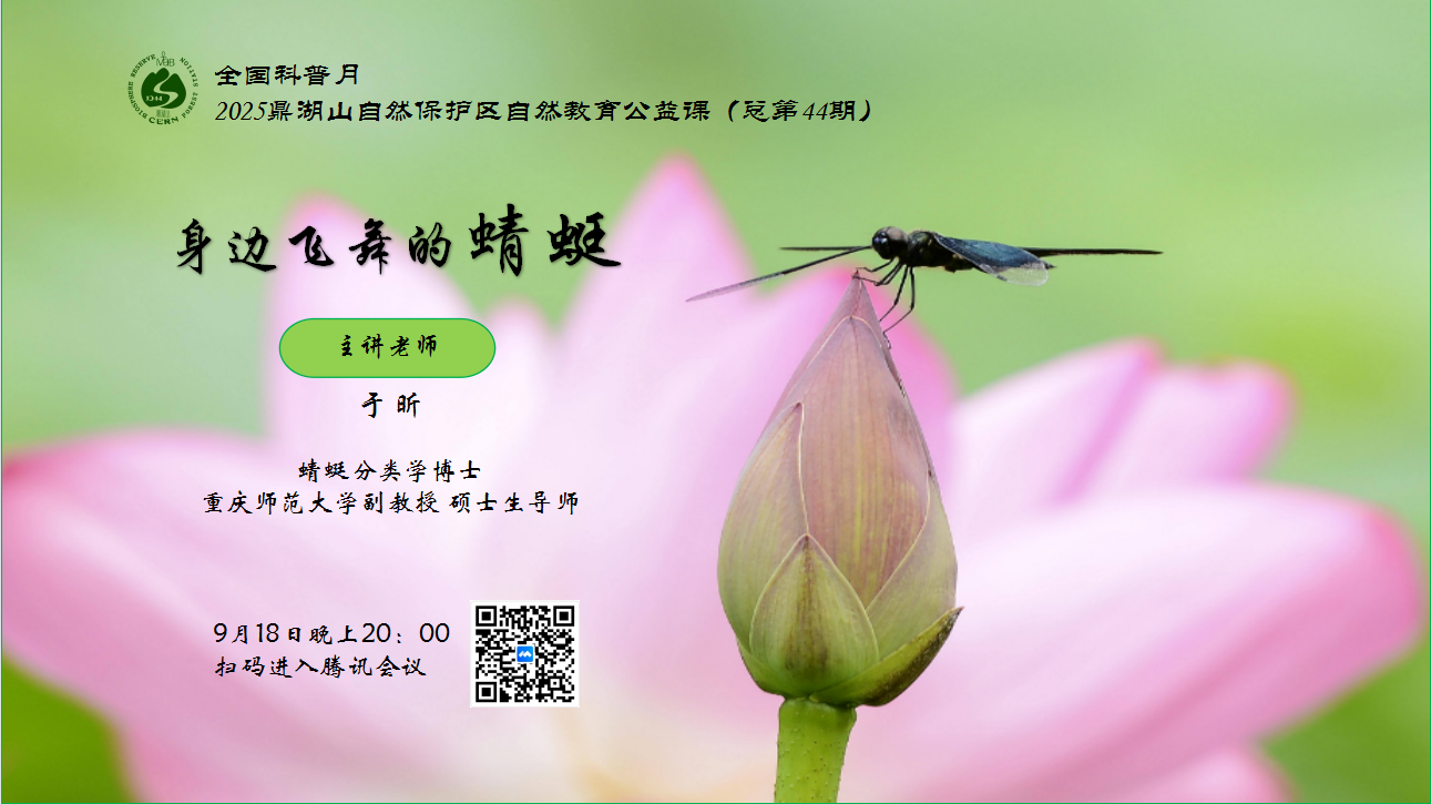考虑到科普的覆盖广度与便捷程度,鼎湖山推出了“身边飞舞的蜻蜓”线上公益课,通过线上直播的形式,让公众足不出户就能与蜻蜓来一场“近距离邂逅”,深入了解这一常见昆虫背后的科学知识。