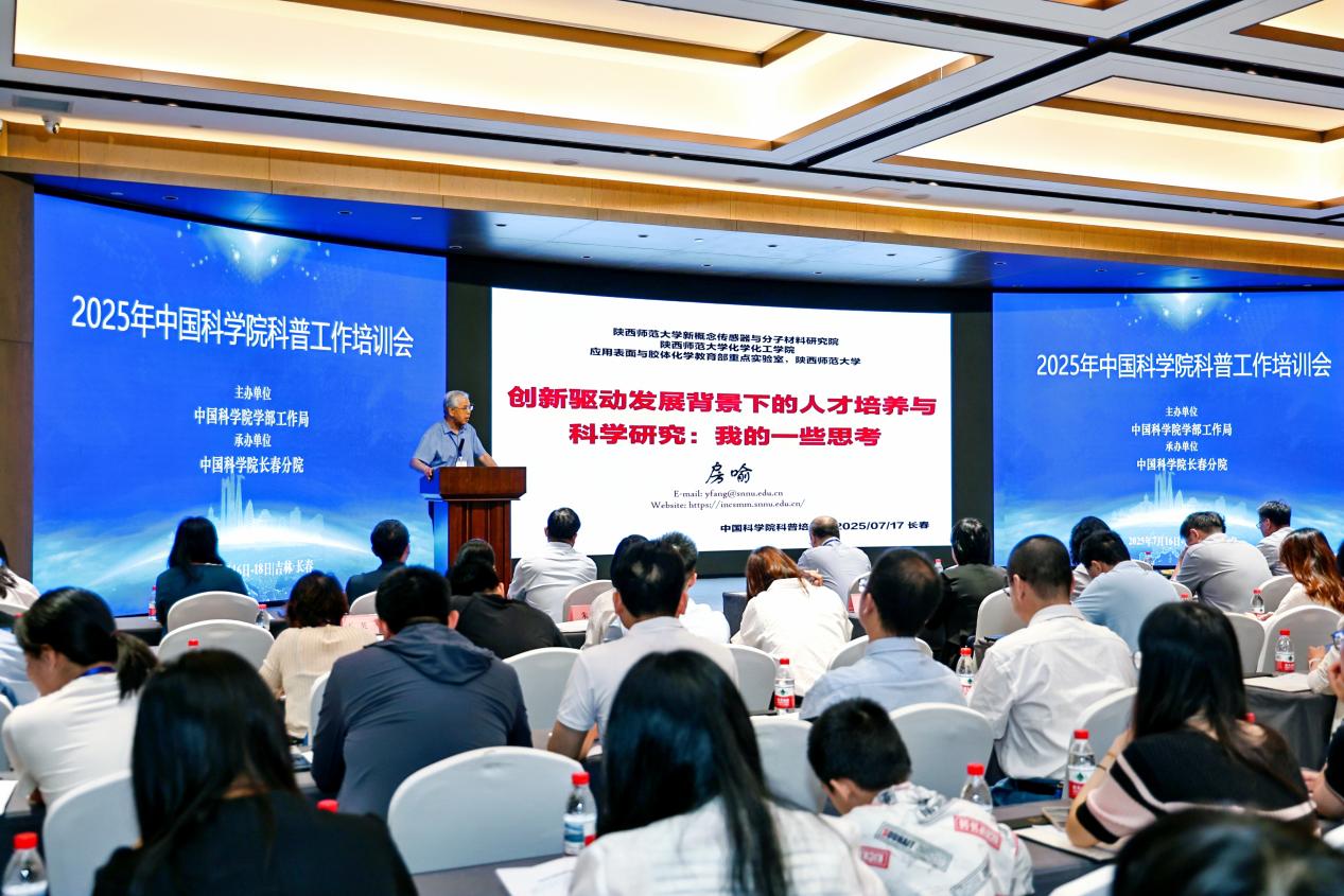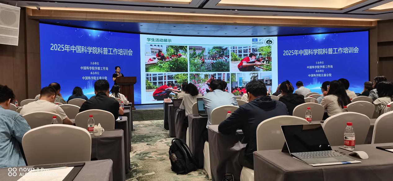 为进一步贯彻落实习近平总书记关于科学普及和科学教育工作的重要论述和给“科学与中国”院士专家代表重要回信精神,全面总结中国科学院2024年度科学普及和科学教育工作,部署重点工作任务,研讨实施“高端科研资源科普化”计划和“‘科学与中国’科学教育”计划,强化全院科普队伍能力建设,中国科学院学部工作局于7月16-18日在吉林省长春市顺利举办2025年科普工作培训会,中国科学院房喻院士、中国科学院学部工作局三级职员周德进、教育部教师工作司教师发展处一级调研员鹿旭忠、中国科学院长春分院副院长武海涛、广州生物医药与健康研究院党委副书记徐海等院内外嘉宾27人,以及院属单位代表140多人参加。鼎湖山国家级自然保护区科教科科长彭丽芳受邀参加并作主题报告。