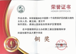 11月30日,第三届全国植物科学科普创新作品大赛总结会在深圳召开,大赛评选结果揭晓,鼎湖山保护区提交的科普文章《科学家精神在中国第一个自然保护区的薪火相传》荣获铜奖,鼎湖山保护区也凭借在科普工作中的卓越组织与推动,荣获优秀组织奖。