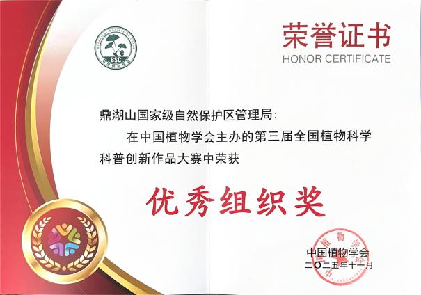 此次大赛由中国植物学会主办,旨在全面落实习近平总书记关于科技创新和科学普及工作的重要指示精神。活动自启动以来,吸引了众多单位积极参与、踊跃投稿。经过大众微信投票、专家投票和会评三个环节的严格评审,最终评选出各类优秀作品及优秀组织单位。鼎湖山保护区在本次大赛中的获奖,是对其在科普创新领域不懈努力的高度认可。